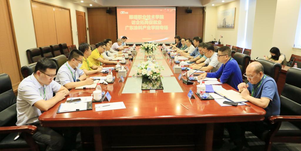 会上,来自佛山市顺德区涂料商会、广东省涂料行业协会、国家涂料产品质量检验检测中心(广东)、科顺防水科技股份有限公司、广东美涂士建村股份有限公司、佛山市顺德区巴德富实业有限公司、广东巴德士化工有限公司的代表纷纷发言,介绍各自企业的发展情况、薪酬待遇、岗位需求等,并就校企合作、产教融合、人才培养、科研项目合作等进行沟通交流。轻化与材料学院负责人介绍了学院2022届毕业生就业情况。